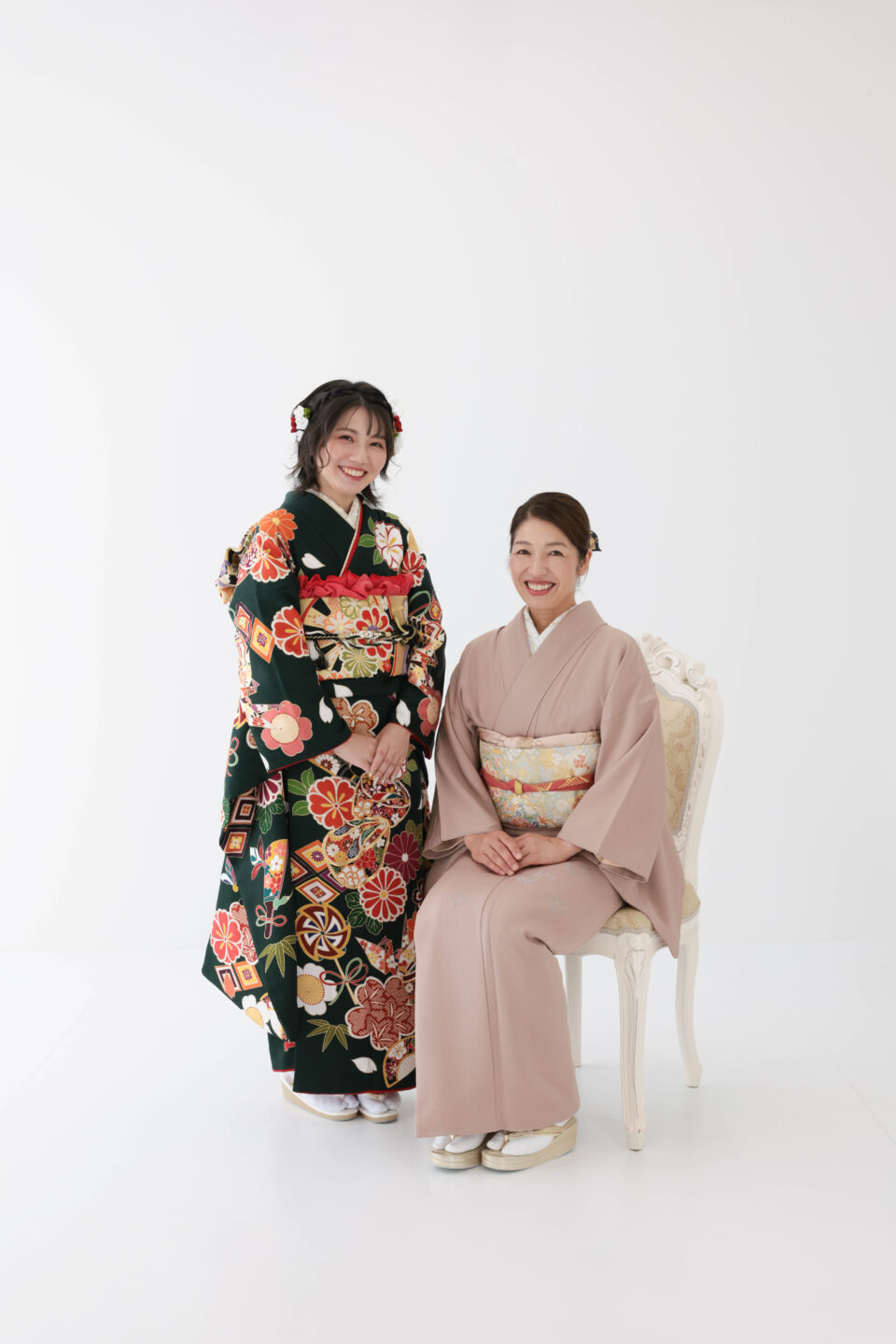 赤色に並んで成人式の定番色になっている緑の振袖✨