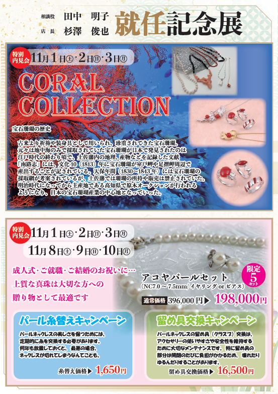 着物はもちろん、パール商品や珊瑚まで幅広い商品が大変お得になる特別な催しとなっております!
